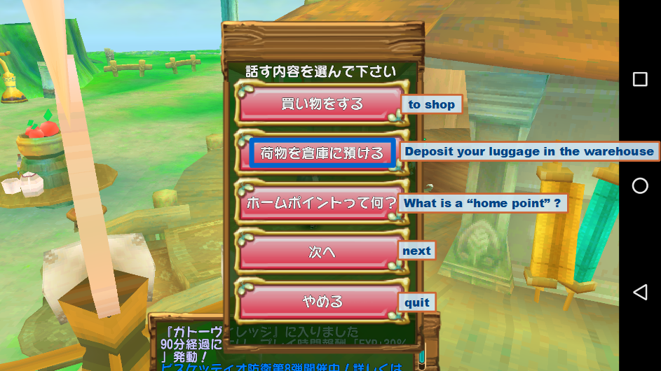 The “倉庫(warehouse)” can be used by talking to a specific NPC.